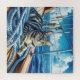 Um gato de mesa está deitado sobre cordas azuis enroladas no convés de um velejador, caindo à luz do sol com claros céus azuis e mares calmos ao fundo