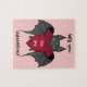 Um morcego amoroso e engraçado apaixonado segurando um grande coração vermelho que diz "Você será meu Namorados?" Mostrado aqui numa ideia divertida de presente de quebra-cabeça para alguém especial.