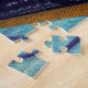 Tarde-tarde, o título da trabalho de arte neste Quebra-cabeça de serra-de-vidro, é uma fotografia original feita em cores pastel primárias. O trem brilhante e azul-prateado é parado na estação, onde a luz do sol amarela chega à plataforma, e acende a parede rosa do prédio.