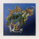 Uma tartaruga marinha verde nadando por uma roda, corda e uma âncora. Tatuagem estilo arte.