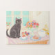 Quebra-cabeça Tea-Time Black Cat Puzzle – Cozy Winter Gift Idea