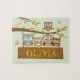 Quebra-cabeça Tema da coruja, sinal de madeira pendurada