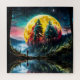 A Lua Grande Colorida se põe na floresta enquanto uma garota assiste através de uma arte do Vale AI por minx267
