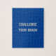 O quebra-cabeça é azul profundo. É quase uma cor sólida. Você pode editar o texto de exibição. O texto da cinza diz "Desafie seu cérebro".
