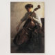 Este design apresenta uma pintura do Impressionista norte-americano Joseph DeCamp (1858-1923). Ele retrata uma celista fêmea enquanto ela segura seu instrumento musical e toca uma melodia desenhando o arco através das cordas. A mulher está sentada na borda de uma cadeira de madeira enquanto toca violoncelo. Sua postura é erguida, mas graciosa. O violoncelo, também conhecido como violoncelo, é um instrumento de cordas curvas da família do violino. Suas quatro cordas normalmente são afinadas em 50 perfeitos: de baixo para alto, C, G, D e A. A obra de arte original foi pintada por Joseph DeCamp em 1908.