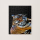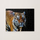 Fotografia impressionante de um tigre bonito que está para fora contra um contexto preto.