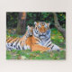 Quebra-cabeça Tigre e Bebê se encaixando bem na grama