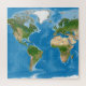 This detailed world map illustration features realistic topographic coloring that highlights Earth’s natural terrain and elevation. Continents are rendered in rich greens, browns, and tans to reflect vegetation, mountains, and deserts, while deep and shallow ocean blues add depth and contrast. The design offers a clean, informative, and visually striking representation of the planet, ideal for geography lovers, educators, and earth science enthusiasts.