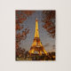 Desafie suas habilidades de fazer de quebra-cabeça com esta foto do Aglow da Torre Eiffel com cores de queda.
