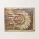 Esta quebra-cabeça apresenta uma velha pintura de Sitting Bull, Chefe Indiano. Excelente para os sopros da história americana.