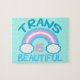 Belo quebra-cabeça transgênero com a bonito bandeira arco-íris trans com uma citação fofa.