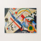 Quebra-cabeça transversal branco de Kandinsky. Óleo em canvas desde 1922. A cruz branca de Wassily Kandinsky do artista do russo representa uma transição para o artista de sua fase adiantada do expressionista ao mais apertado mais pinturas céntricas do formulário de sua fase abstrata. O trabalho caracteriza as linhas duras e as agulhas apertadas que caracterizariam o trabalho mais atrasado de Kandinsky ao igualmente caracterizar alguns dos toques expressivos mais fracos que marcaram seu trabalho mais adiantado. Um presente bonito para fãs de Kandinsky, de pinturas abstratas, e de arte moderna.