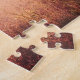 Esta quebra-cabeça apresenta uma foto de um trator no campo na colheita esperando com uma carga de grãos.