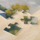 Um charmoso quebra-cabeça com ilustração nostálgica de um trator vermelho em uma fazenda. O campo e os edifícios estão sob um céu cinza, e o sol da tarde brilha no campo, criando longas sombras. A cena tranquila do campo é ideal para o passatempo relaxante de completar um quebra-cabeça.