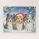 Este adorável quebra-cabeça apresenta uma pintura aquosa de três prateleiras sentadas na neve. A estante no meio está vestindo o chapéu dos Papais noeis