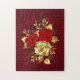 A composição de duas rosas vermelhas pintadas artisticamente e uma rosa ouro, decorada com ouro, folhas de joias sobre fundo texturizado.