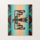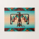 Aproveite esta Quebra-cabeça de Thunderbird Tribal "Um dos Tipos"! Ele apresenta um Thunderbird nativo americano em um fundo de Turquesa e Sunset Laranja.. cercado por uma fronteira em Turquesa, Laranja e Preto! Design De Arte Original Pelo Artista Kerry Miller.