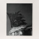 Anjo vermelho de cabelo branco com asas pretas tribais. Tudo em tons de cinza.