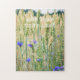 Quebra-cabeça de quebra-cabeça com o tema da natureza com uma foto do campo de trigo com flores azuis. Lindo cenário rústico. Por favor, personalize-o, adicionando sua própria mensagem. Para mais modificações (estilo de fonte, cor de fonte, posição de texto), clique em "Editar design".