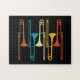 Trombone retrorreflector apresenta quatro trombones em um olhar vintage angustiado. Esta camisa trombonista vintage é perfeita para amantes da música jazz, Nova Orleans, bebop, jazz liso, solo sax, música rock, banda grande e fusão de jazz.
