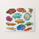 A pintura original das belas artes de peixes tropicais coloridos das cichlidaes ao killifish e de bettas pelo artista Carolyn McFann imprimiu em um quebra-cabeça de serra de vaivém da qualidade para fãs de água doce dos peixes do aquário.