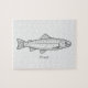 Um simples quebra-cabeça com ilustração de truta e mensagem de texto abaixo para um presente de aniversário para um pescador, um guia de pesca, um amante de peixes, etc.