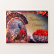 Vintage image de um peru ao lado de uma tigela de maçãs vermelhas e das palavras "Saudações de Ação de Graças". O esquema de cores apresenta tons de terra quente. Esta design é baseada numa imagem dominio público da coleção Nancy Oram. Personalize com seu nome, monograma ou foto. Entre em contato com o Planeta de Férias para obter solicitações ou assistência especiais. © Copyright 2015 P.D., Planeta Natal. Todos os direitos reservados.