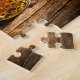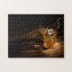 Quebra-cabeça de quebra-cabeça de um cubo de gelo saltando em um vidro de uísque de cristal em uma mesa de madeira rústica. Escolha entre os diferentes tamanhos disponíveis.