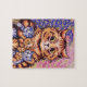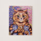 Um encantador quebra-cabeça de quebra-cabeça de arte com ilustração do artista britânico Louis Wain (1860-1939), conhecido por suas ilustrações de gatos com expressões antropomórficas. Esta peça em particular retrata uma gata-mãe berrando seus gatinhos azuis e laranja.