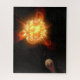 Ilustração de uma jovem anã vermelha tirando a atmosfera de um planeta em órbita. As explosões violentas de gás natural proveniente de jovens estrelas anãs vermelhas podem tornar as condições inabitáveis em planetas que estão em fuga.
