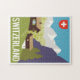 Características que deste design uma cena retro do estilo do poster de viagens dos cumes suíços termina com chalés e picos de montanha nevado.