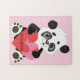 Um urso panda adorável, esta quebra-cabeça apresenta uma rosa claro bonito com um panda segurando um coração. Personalize seu nome no coração. Trabalho de arte criado por: AMBilustrações http://www.etsy.com/shop/AMBillustrations/
