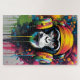 Il montre un beau portrait en musique avec une explosion de couleurs. C'est un dessin numérique . Cadeau idéal pour la fête de la musique et pour toutes les occasions : anniversaires, fêtes, fêtes des parents, cadeau à offrir, s'offrir ou se faire offrir...