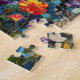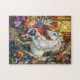 Encantando vidro manchado de um unicórnio em um jardim floral vibrante.