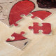 Uma variedade de formas cardíacas, variando em tamanho e cor, estão espalhadas por um fundo bege, criando um padrão repleto de calor e charme. Os corações são representados em tons de vermelho, rosa, branco e verde, dando à imagem um toque lúdico e romântico.