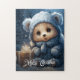 Design quebra-cabeça de guisado encantador apresentou um ursinho de pelúcia bonitinho na noite de Natal com o guião de presente Feliz Natal - o presente perfeito para seus filhos, personalizado com o nome da família.