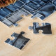 Trabalho de arte vibrante representando um urso com um casaco de pele rico e texturizado, colocado sobre um fundo de retalhos com tons azuis e cinzas. O urso é imponente e semelhante à vida, chamando a atenção com suas características realistas.