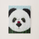 O adorável urso panda fica entre a grama verde, enquanto ele admira seu novo visitante, a joaninha. Wildlife Series #1 Arte original de um Artsy Momma