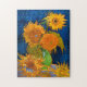 Quebra-cabeça com o Vaso de Vincent van Gogh com Cinco Girassóis (1888). A vida ainda mostra cinco lindos girassóis em um vaso verde. Um presente de excelente para fãs do Poste-impressionismo e da arte holandesa.