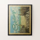 Esta design do cartão postal Vintage de Ventura apresenta uma praia arenosa com uma bela água turquesa oceânica e acima do mar, um céu azul com nuvens brancas onduladas. No estilo viagens vintage.