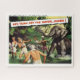 quebra-cabeça de serra de 20" x 16" com uma imagem de vintage de um anúncio feito pela Cannon Mills para suas toalhas de canhão. Este anúncio mostra um grupo de jovens e belos marinheiros vestindo calções brancas enquanto banhavam num rio que se acredita estar na Índia. Há dois homens indianos turborizados com lanças e dois elefantes; um deitado na água e o outro na água pulverizada de um dos marinheiros. O texto diz: "Ei, desligue o Jumbo Água!" As Cannon Towels publicaram estes anúncios na Segunda Guerra Mundial que se baseavam em cartas reais que receberam dos rapazes no campo sobre os seus produtos. A arte foi feita pelo artista prolífico James Bingham que mostra suas excelentes habilidades. A arte é como tal para tantalizar a audiência do anúncio, mulheres, então o que é melhor do que um bando de soldados escassamente clades, marinheiros, fuzileiros e aeromoças para todas aquelas senhoras solitários de volta para casa? Veja toda a Quebra-cabeça Patriótica dos anos 40 nas ATIVIDADES | Seção Quebra-cabeça.