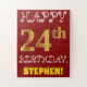 Este quebra-cabeça de aniversário simples e divertido apresenta a mensagem "FELIZ 24 ANOS", com o "24.º" a ter uma aparência falsa/imitada de cor dourada. Também apresenta um nome personalizado e um fundo de cor vermelha. Pode ser uma maneira divertida e especial de dar uma saudação de aniversário personalizada a alguém que comemora seu vigésimo quarto aniversário. [~Z0000200]
