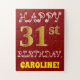 Este quebra-cabeça de aniversário simples e divertido apresenta a mensagem "FELIZ 31º ANIVERSÁRIO", com o "31º" a ter uma aparência falsa e imitada de cor dourada. Ele também apresenta um nome personalizado e um fundo de cor vermelha. Pode ser uma maneira divertida e especial de dar uma saudação de aniversário personalizada a alguém que está comemorando seus trinta e primeiros anos. [~Z0000200]