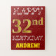 Este quebra-cabeça de aniversário simples e divertido mostra a mensagem "FELIZ 32º ANIVERSÁRIO", com o "32º" a ter uma aparência falsa e imitada de cor dourada. Também apresenta um nome personalizado e um fundo de cor vermelha. Pode ser uma maneira divertida e especial de dar uma saudação de aniversário personalizada a alguém que comemora seus trinta e dois anos. [~Z0000200]