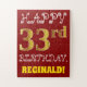 Este quebra-cabeça de aniversário simples e divertido apresenta a mensagem "FELIZ 33º ANIVERSÁRIO", com o "33º" a ter uma aparência falsa e imitada de cor dourada. Ele também apresenta um nome personalizado e um fundo de cor vermelha. Pode ser uma maneira divertida e especial de dar uma saudação de aniversário personalizada a alguém que comemora seus trinta e três anos. [~Z0000200]