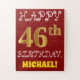 Este quebra-cabeça de aniversário simples e divertido apresenta a mensagem "FELIZ 46º ANIVERSÁRIO", com o "46º" a ter uma aparência falsa e imitada de cor dourada. Ele também apresenta um nome personalizado e um fundo de cor vermelha. Pode ser uma maneira divertida e especial de dar uma saudação de aniversário personalizada a alguém que comemora seus quarenta e seis anos. [~Z0000200]