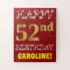 Este quebra-cabeça de aniversário simples e divertido apresenta a mensagem "HAPPY 52nd BIRTHDAY", com o "52º" a ter uma aparência falsa e imitada de cor dourada. Ele também apresenta um nome personalizado e um fundo de cor vermelha. Pode ser uma maneira divertida e especial de dar uma saudação de aniversário personalizada a alguém que está comemorando seus cinquenta segundos anos. [~Z0000200]