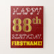 Este quebra-cabeça de aniversário simples e divertido apresenta a mensagem "FELIZ 88.º ANIVERSÁRIO", com o "88.º" a ter uma aparência falsa/imitada de cor dourada. Também apresenta um nome personalizado e um fundo de cor vermelha. Pode ser uma maneira divertida e especial de dar uma saudação de aniversário personalizada a alguém que comemora seu oitenta aniversário. [~Z0000200]