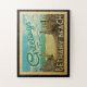 Esta design do cartão postal da Bethany Beach mostra uma praia arenosa com uma bela água turquesa oceânica e acima do mar, um céu azul com nuvens brancas e onduladas. No estilo viagens vintage.