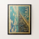 Design em estilo Viagens vintage de Dubai com uma cena costeira com a praia e a linha do horizonte de Dubai.